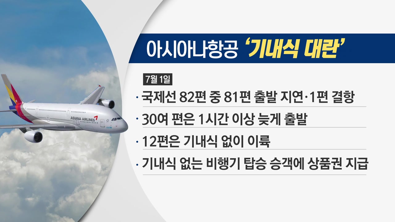 라는 소리를 들었고 월요일에 뉴스들으며 아시아나 역사상 최초로 기내식이 안실려서 비행기가 지연되는 초유의 사태가 일어났다
