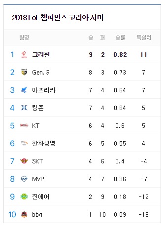 ㄴ실시간 순위 트위치 중계(OGN): https://www.twitch.tv/lck_korea 스프링시즌에 벌어놓은 챔피언십 포인트를 지키며 롤드컵 선발전 막차를 타느냐, 아님 승강전 나락으로 떨어져서 싹 다 날려먹느냐의 기로에 놓인 SKT. 1, 2, 3위 팀들(그리핀, 젠지, 아프리카)을 가볍게 이기고 4, 6, 7위(킹존, 한화, 슼)에게 쓸린, 롤드컵에 나가기만 하면 우승할 듯한데 못 갈 것 같은 대퍼팀 KT. 자존심 강한 두 통신사팀의 올해 정규시즌 마지막 대결이 곧 시작됩니다. 0