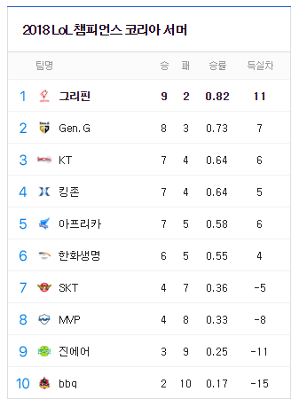 ㄴ현재 순위 트위치 중계(OGN): https://www.twitch.tv/lck_korea 드디어 숙적 SKT를 극복한 KT가 섬머시즌 우승과 롤드컵 진출을 향해 날아오를 수 있을 것인가 과연 SKT가 한화를 끌어내리고 강등권을 탈출함과 동시에 포스트시즌과 선발전 막차를 탈 수 있을 것인가 0