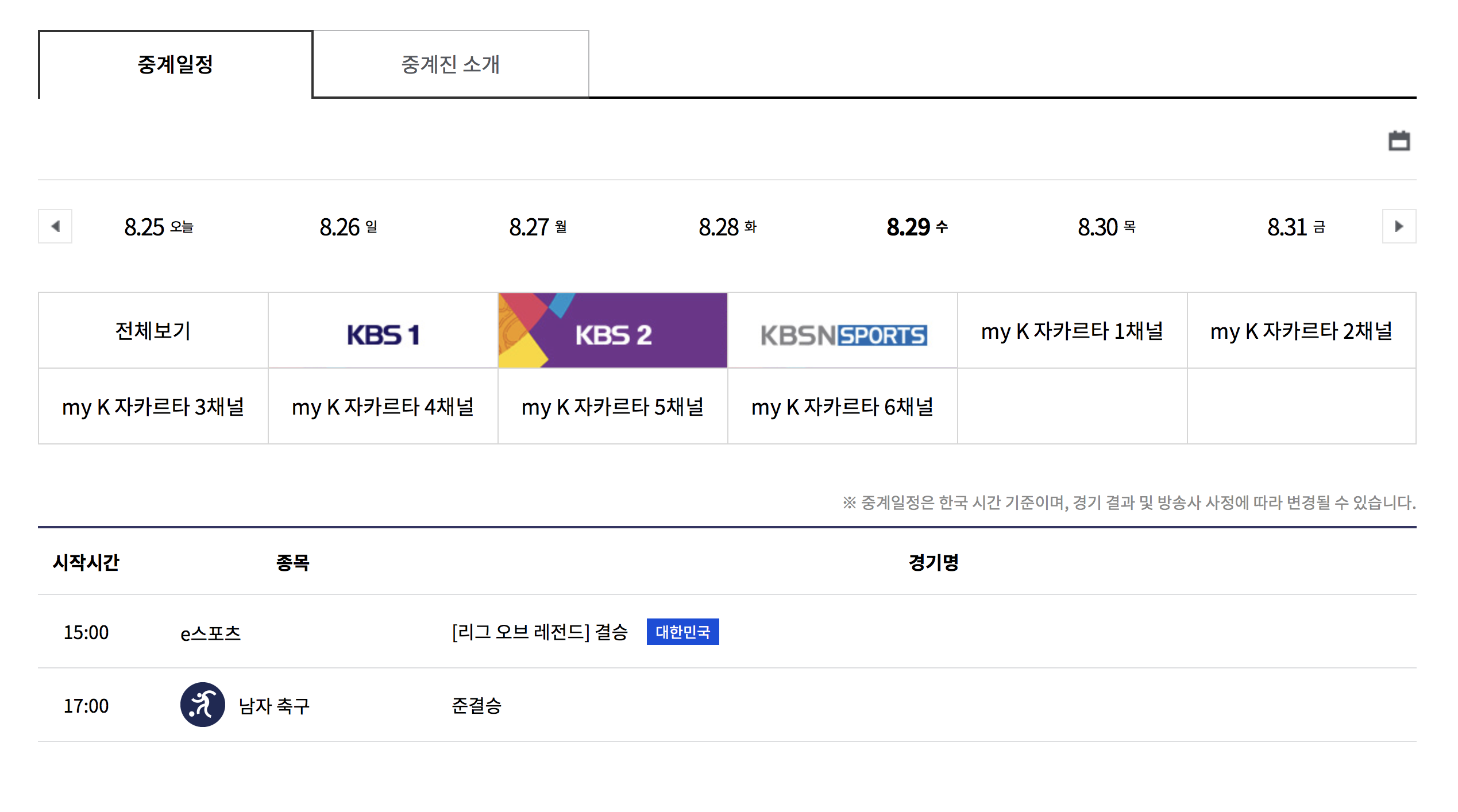 | Subject | 롤 아시안게임 중계 일정이 업데이트 되었습니다. |