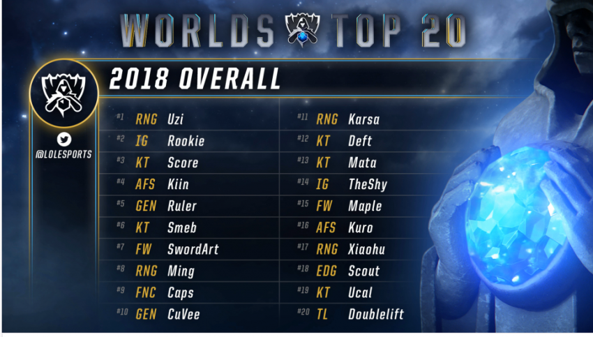 Uzi - 최초로 LCK가 아닌 선수가 랭킹 1위 달성 (14~17년 모두 LCK에서 1위)