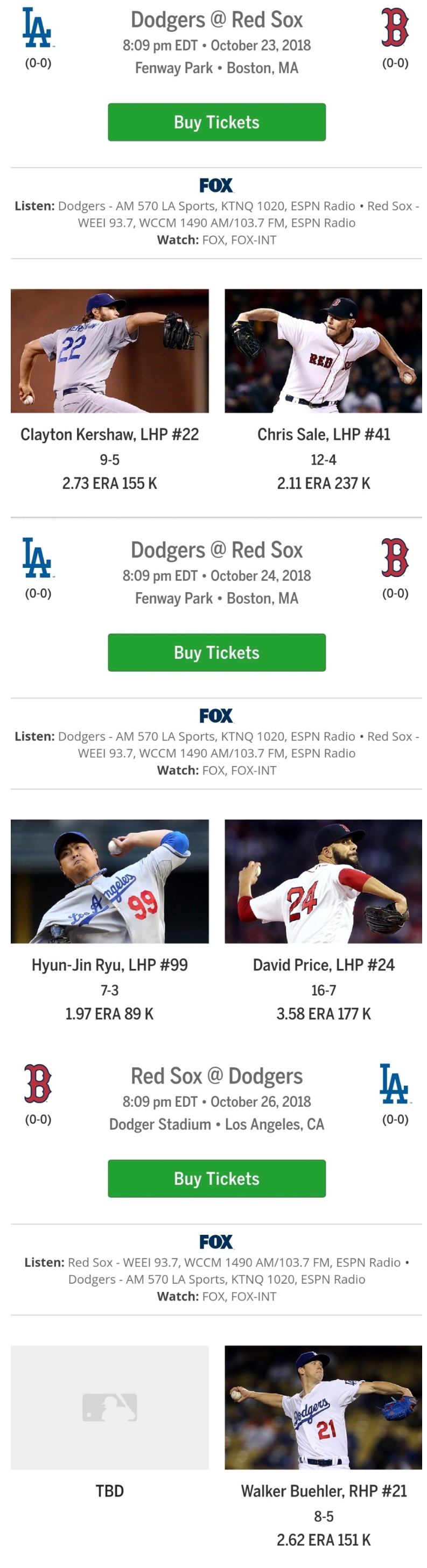 Dave Roberts: Kershaw Game 1, Ryu Game 2, Buehler Game 3. Chavez Ravine Fiends@RavineFiends World Series announced rotation: Game 1 - Clayton Kershaw Game 2 - Hyun-Jin Ryu Game 3- Walker Buehler 안녕하세요 김치찌개입니다! 류현진이 월드시리즈 2차전 선발 확정되었습니다 개인적으로 3선발로 예상했는데 예상이 빗나갔네요 2차전에 나오면 6차전에도 나온다고 보고 둘다 원정인데 믿음에 보답해서 멋진 호투 보여주었으면 좋겠습니다 벌써부터 흥분이 됩니다 월드시리즈는 내일부터 시작됩니다! 0
