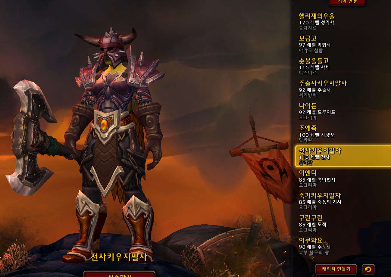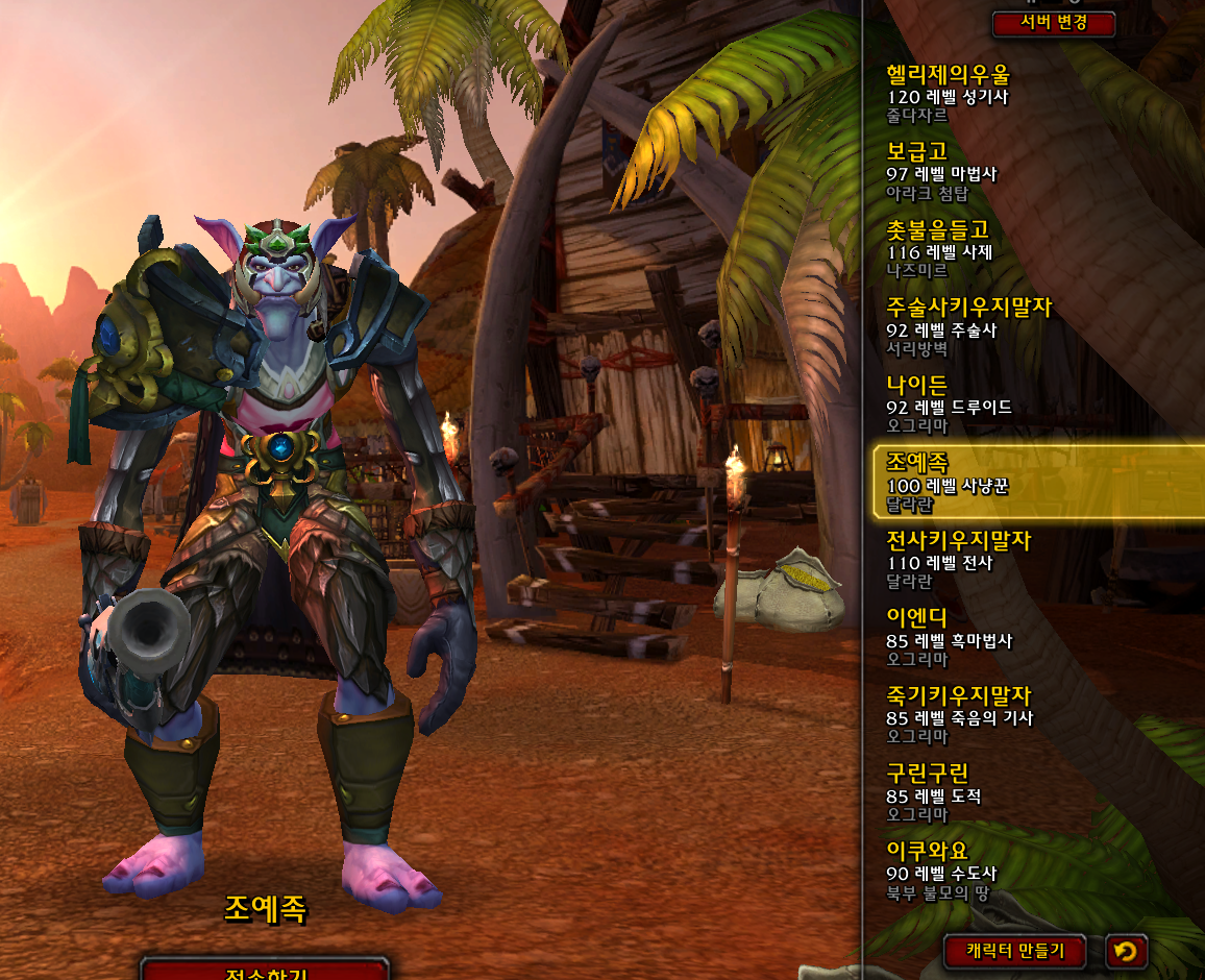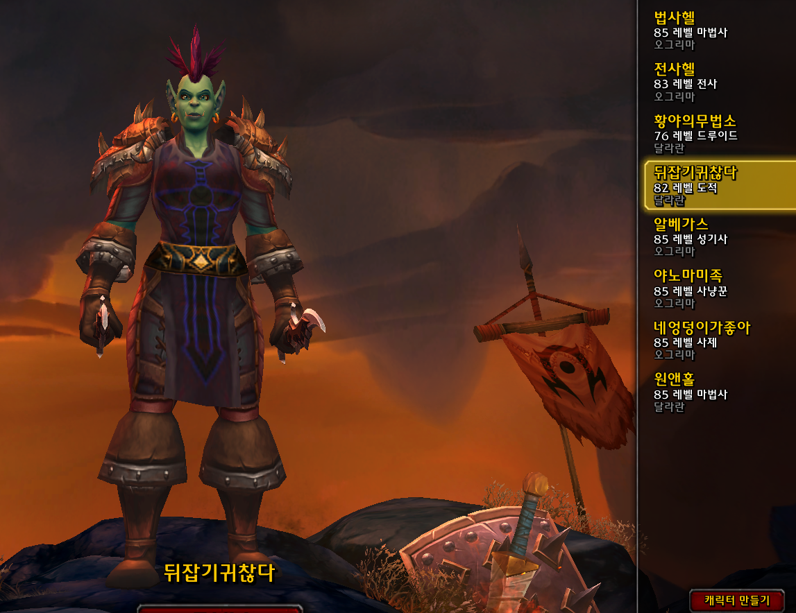 대격변때 제가 엄청 잉여해서 85레벨은 찍었네요 판다부터는 출근충이라 부캐렙업을 못해서...