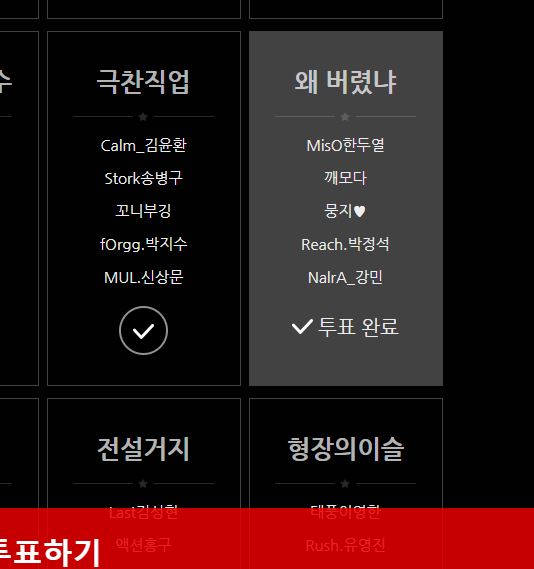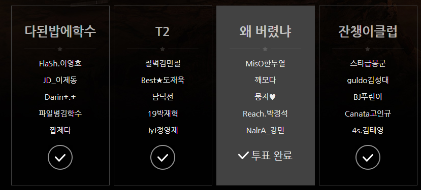 이 링크로 들어가셔서 [한두열 김경모 박정석 강민 믕지] 선수가 팀원인 [왜 버렸냐]팀에 투표 후 인증해주신 분중에 3분을 추첨해서 스타벅스 아이스모카 혹은 그에 준하는 원하시는 메뉴의 키프티콘을 보내드리겠습니다. 이 글에 댓글로 달아주시면 될것같아요.