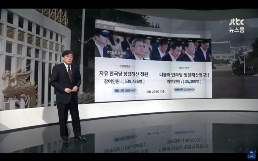 자유한국당의 정당해산 청원과 더불어민주당 정당해산 청원. 이 두 가지를 놓고 어제 손석희씨는 앵커 브리핑에서 이렇게 말했습니다. "며칠째 청와대 국민청원게시판을 도배하고 있으며 시민들이 어떻게든 답변을 듣고자 하는 주제. (중략) 서로 시작된 날짜가 차이가 나기 때문에 직접 비교는 어려운 것이지만 우리 정치가 초래한 오늘의 현주소를 말해주고 있었습니다." 폭력조직으로 흑화해 국회법을 실시간으로 위반하던 자유한국당의 정당해산 청원과. 그에 대해 '맞불'을 놓았다고 언론에 의해 포장된 더불어민주당 정당해산 청원. 이 두 청원의 규모와 본질이. 단지 청와대 청원이라는 동일성이 있다는 이유로. 동일 선상에서 비교된다는 것은. 언론이 언론으로서의 눈을 감고 귀를 틀어막았다는 이야기일 뿐입니다. 돌이켜 보면 언론이 권력에 순응하거나. 자신이 다른 권력 기관이 되어 마땅히 판단할 것에 눈을 감고 귀를 막는 일은 상습적이고, 반복적으로 벌어졌습니다. 언론이 어느 새 권력 기관이 되어 정치와 사회의 갖은 이슈들을 자기 맘대로 판단하는 건 어제오늘 일이 아닙니다. 그리고 그 과정에서 권력에 결탁하는 일도 흔치 않게 벌어집니다. 세월호 참사에서 대부분의 언론은 잘못된 정부의 방침에 순종하면서 유가족들을 돈에 환장한 사람. 국익을 저해하는 사람으로 몰아붙였고 박진성 시인은 특정 언론의 맹목적 보도에 의해 성범죄자 취급을 받아야 했습니다. 세월호와 박진성 시인 같은 억울한 언론 피해자가 생겼던 시기는 관제데모와 헌정파괴가 있던 독재정권 시기도 아니고 보도지침을 내렸던 전두환씨 집권 시기도 아닙니다. 그리 멀지 않았던 시점에 있었던 일이고 지금도 벌어지고 있는 일입니다. 요즘 언론의 정치 보도에서는 "야당의 발목잡기"란 말이 매우 크게 줄어들었습니다. 그리고 그 자리를 "여당의 독선과 오만", "협치와 화합" 같은 언어가 대신합니다. 어느 한 쪽이 명백한 잘못을 한 게 분명한 이슈에 대해서도 VS 놀이를 하던 게 어제 오늘 일은 아니지만 요 며칠 사이 한 야당이 일방적으로 폭력을 휘두르고 범법행위를 저지른 광경에 대해서도 대부분의 언론들은 "여야 대치"라는 말을 썼습니다. 위에서 든 '우리의 현주소'라는 말 역시 그와 다르지 않은 것 같습니다. 한쪽에는 시베리아 호랑이와 암사자 무리가 있고. 다른 한쪽은 하이에나급도 안되는 늑대, 여우 무리가 있습니다. 현학적인 언어로 포장하지 않아도 어느 무리가 더 위험한 맹수 무리인지는 알 수 있습니다. 이 두 가지에 대한 판단을 회피하고. 동일 선상에서 비교하면서. '이것이 우리의 현주소'라고 자기는 참가자가 아닌 양 회피하는. 그나마 가장 신뢰한다고 일컬어지는 언론의, 가장 신뢰받는 언론인의 말. 자기 멋대로 편향된 목소리를 내고 정치적인 길을 걷다가. 정작 내야 할 목소리는 안 내고 해야 할 판단은 안 하는. 대한민국 언론의 현주소를 잘 보여주고 있습니다. - The xian - 5