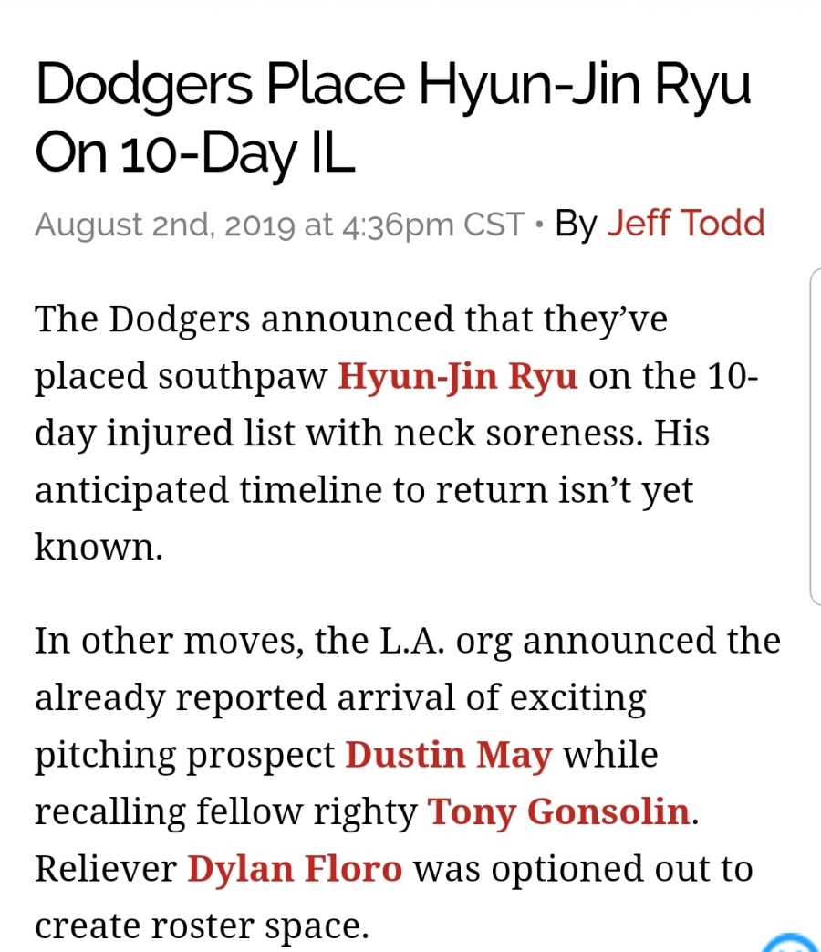 | Subject | [MLB] 류현진 IL |