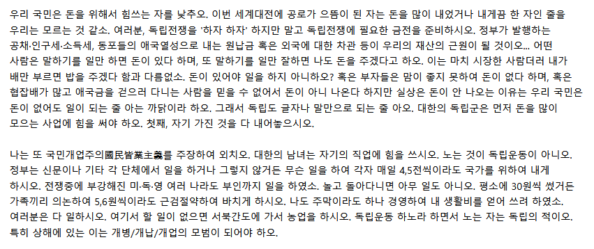 요약하면 영리를 추구하는 “개업의의 기만성과 기생충적인 사회적 성격”을 비판하였고 “실비진료소, 노동자건강보험제도와 국민보험제도 실시 등 ‘의료의 사회화’를 추구해야 한다고 주장했습니다.
