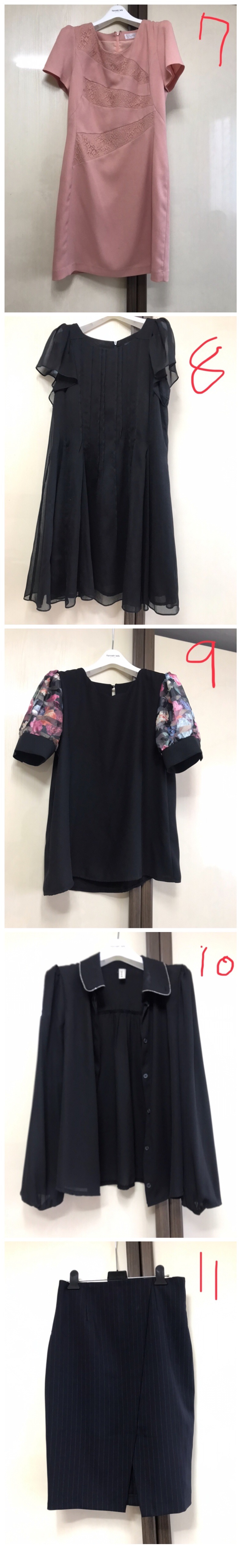 옷나눔 올리겠다고 하고 계속 못 올리다가 드뎌 올려요^^ 나누기엔 그리 괜찮은 옷이 없어 막판에 고민했지만 그래도 혹시 누군가는 맘에 든다고 하지 않을까!! 하여 올려봅니당 특별히 사이즈 표기 없으면 66 블라우스는 대부분 프리입니다 택배비만 내고 가져가심 돼요^^ 1인당 1벌 제한은 없으나 가급적 세벌 이하로 해주심 여러 분들이 받아보시기 좋을 것 같아요 ☆★ 댓글로 번호 표시해주세요 —— 1. 모조에스핀 모100% 연노랑 요즘엔 고가 브랜드도 폴리가 많은데 이건 모100짜리에요 겨울용 울 말고 봄가을용입니당 2. 잇미샤 검정 카라원피스 미샤 서브브랜드라 그런지 미샤처럼 복잡한 커팅이 있는 원피스에요 가는 벨트 하면 치마부분 정말 예뻐요 3. 린 원피스 블라우스 입은 것 같은 옷이에요 단정하게 입을 수 있어요 :D 봄가을용이에요 4. JJ지고트 블라우스 55 카라 러플은 “실크”에요 이건 받으셔서 드라이 한번 하셔야해요 안에 텍 보면 아시겠지만 거의 입지 않았어요 이건 55입니다!! 5. 샤틴 레이스 자켓 샤틴 레이스 자켓이에요 좀 도톰합니다 레이스 넘 이뻐요 ㅋㅋ 6. 회색 겨울 원피스 이건 브랜드 없어요 엄청 루즈핏이에요 주머니는 모양만 있습니당 7. 라인 핑크 원피스 린 서브브랜드 여름 원피스에요 시원하고 굿굿 8. 린 검정 쉬폰여름원피스 쉬폰이 정말 가볍고 엄청 시원합니다 ㅋㅋㅋ 9. 오간자소매 블라우스 이것도 브랜드 없네요 소매가 오간자였던걸로 기억해서 소매가 이뻐서 샀는데 요것도 몇 번 안입었어요 10. 검정 블라우스 긴팔인데 얇아요 그냥 여기저기 받쳐입기 좋은 기본 블라우스에요 11. 남색 스트라이프 스커트 가느다란 스트라이프가 있는 남색 스커트 여름인 지금도 입기 좋아요 안에 텍은 L인데 제가 수선해서 허리단면 36, 힙단면 47쯤 돼요^^ 37