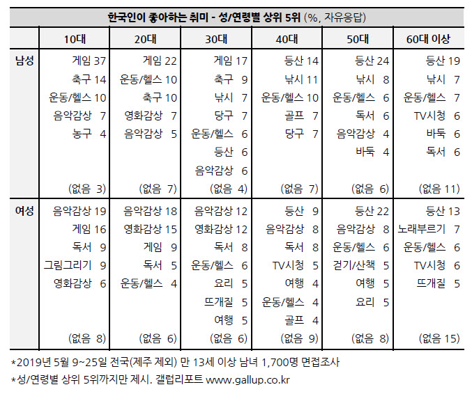 취미는 아웃도어 패션이 평상복으로도 인기있는 나라답게 등산이 비중이 2014년 보다는 줄었지만, 여전히 높은 것 같고, 5년전에 비해 운동/헬스를 취미로 하는 비중이 늘었네요.