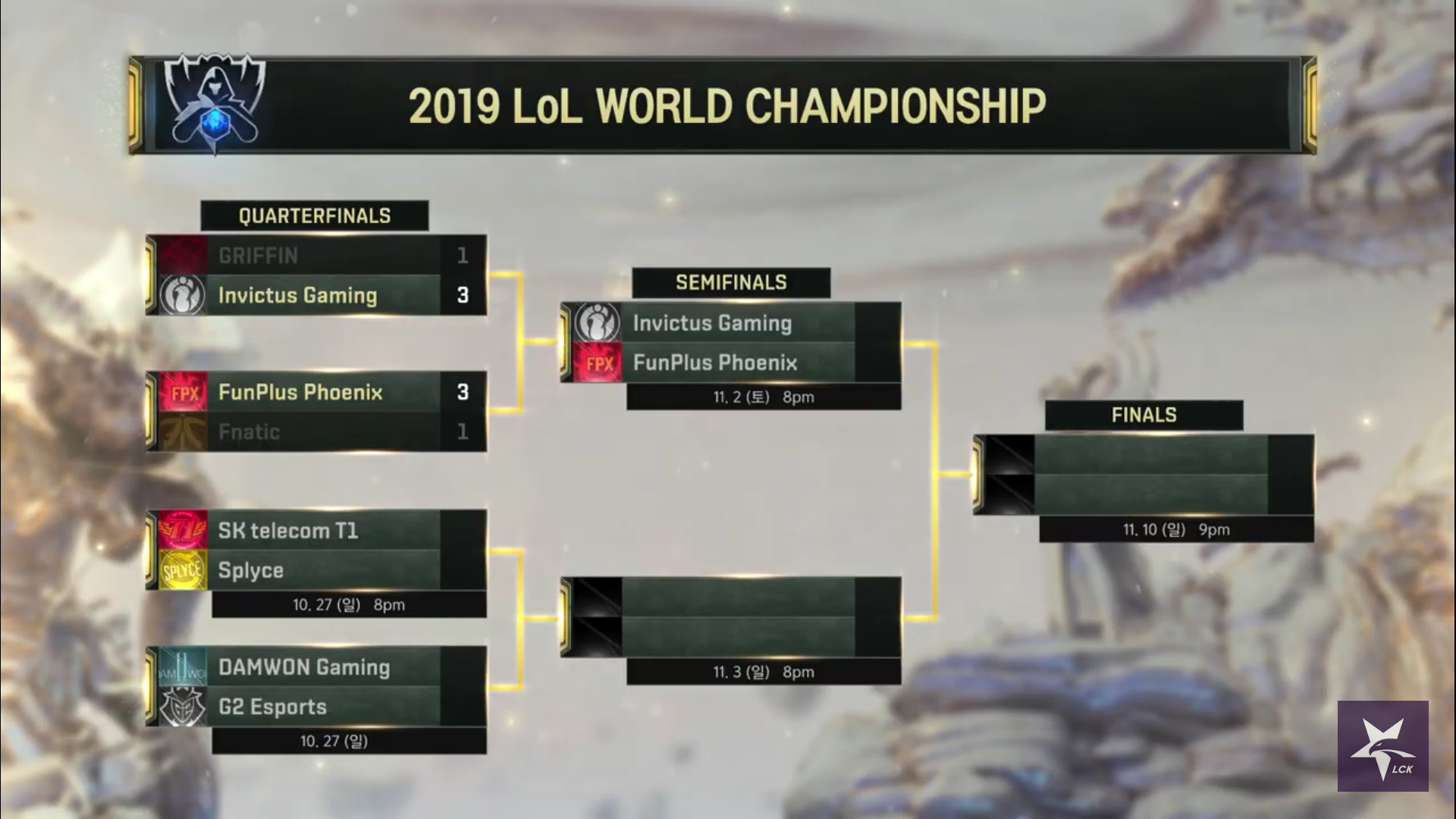 | Subject | [LOL] 10월 26일 토요일 오늘의 일정 |