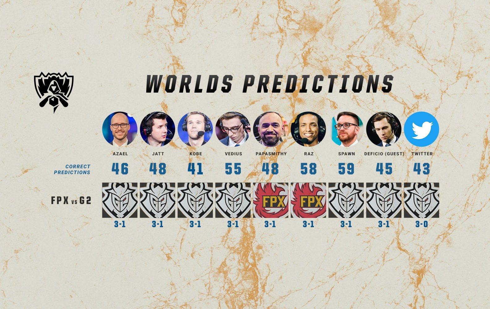 드디어 WORLDS 2019 우승팀이 가려집니다. 그랜드슬램을 앞둔 G2 vs 로열로더 FPX 중계채널 1. 트위치: https://www.twitch.tv/lck_korea 2. 트위치(글로벌): https://www.twitch.tv/riotgames 3. 유튜브: https://www.youtube.com/channel/UCw1DsweY9b2AKGjV4kGJP1A 4. 유튜브(글로벌): https://www.youtube.com/channel/UCvqRdlKsE5Q8mf8YXbdIJLw 5. 네이버: https://sports.naver.com/esports/index.nhn 6. 아프리카: http://play.afreeca.com/aflol 0