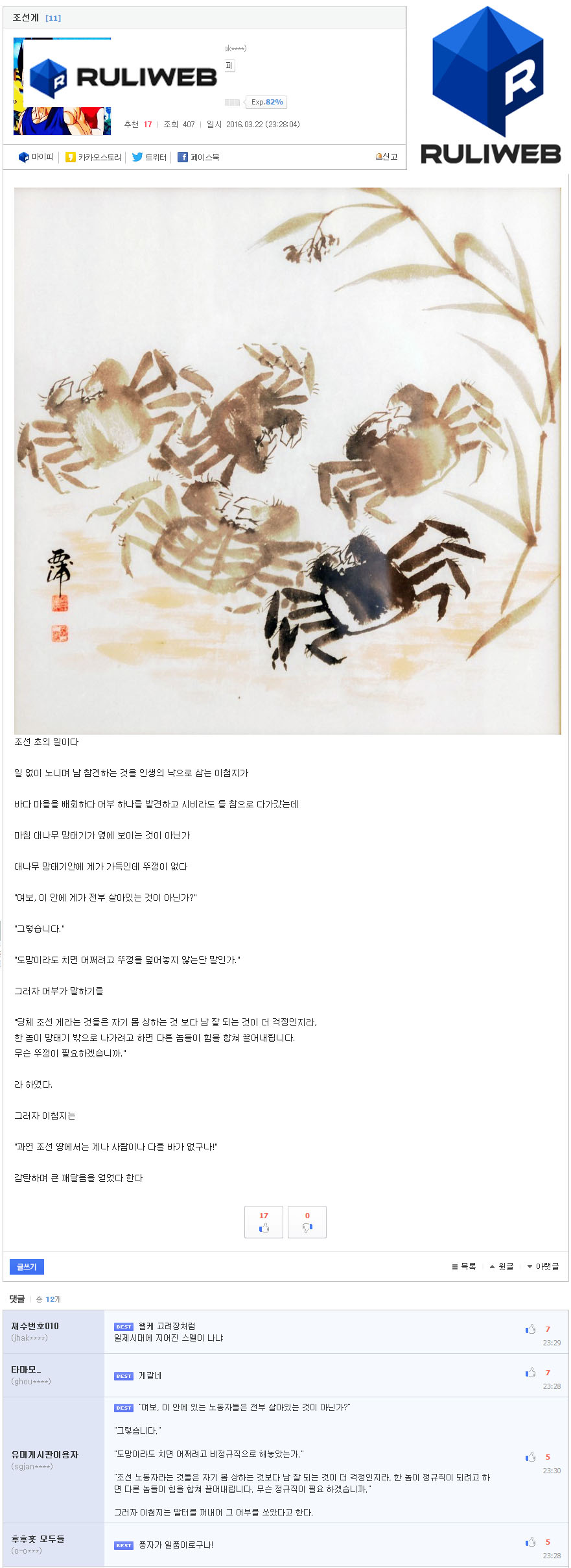 - 유머가 아닌 펌글, 영상 등 가볍게 볼 수 있는 글들도 게시가 가능합니다.