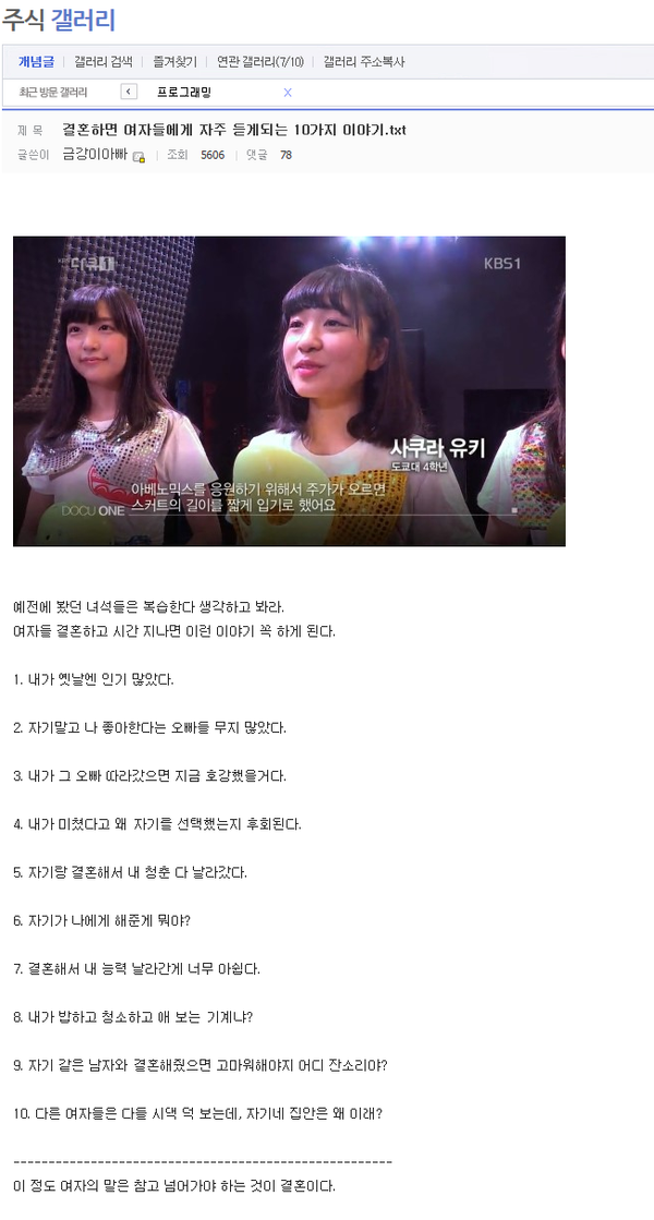 | Subject | 결혼하면 여자들에게 자주 듣게되는 10가지 이야기 |