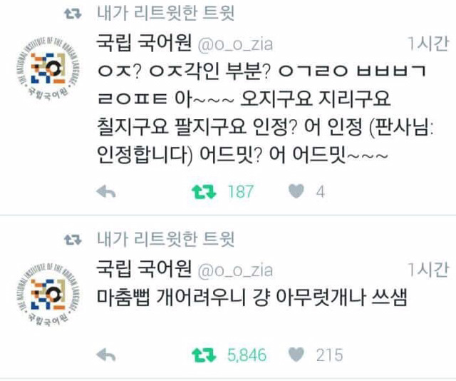 | Subject | 현시각 국립국어원 트위터 상황 |