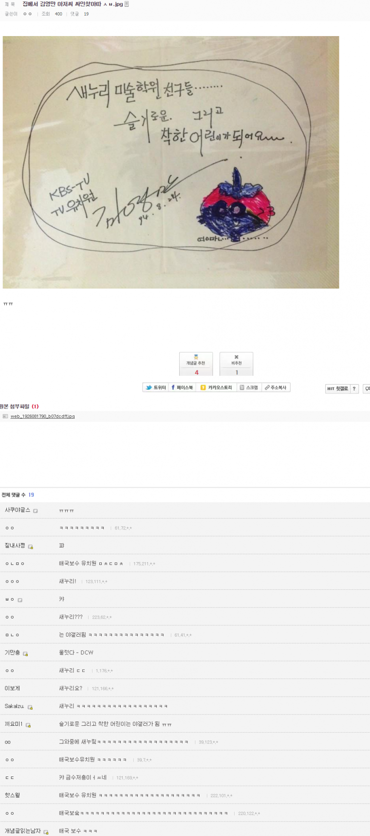 1062 [마리텔] 김영만 선생님 사인 찾은 디시인 4 세계구조 15/07/12 4889 0
