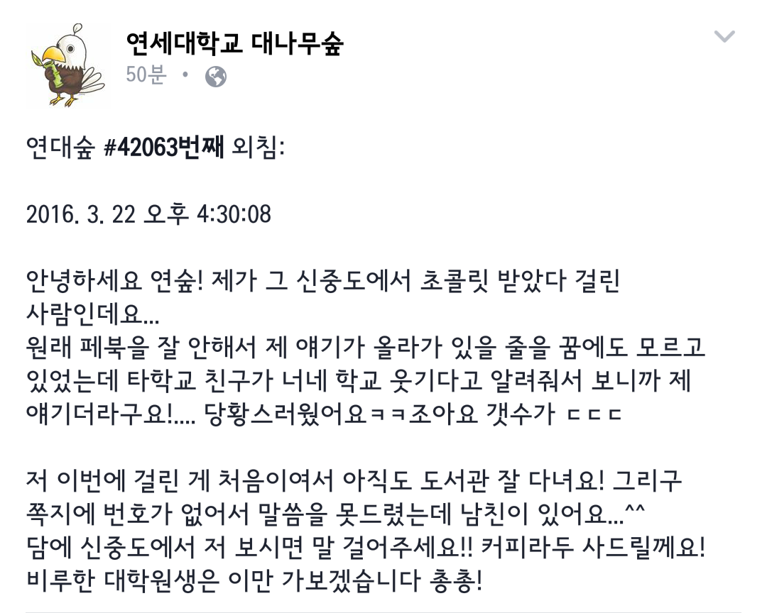 | Subject | 연세대 도서관 쪽지 사건 후기 |