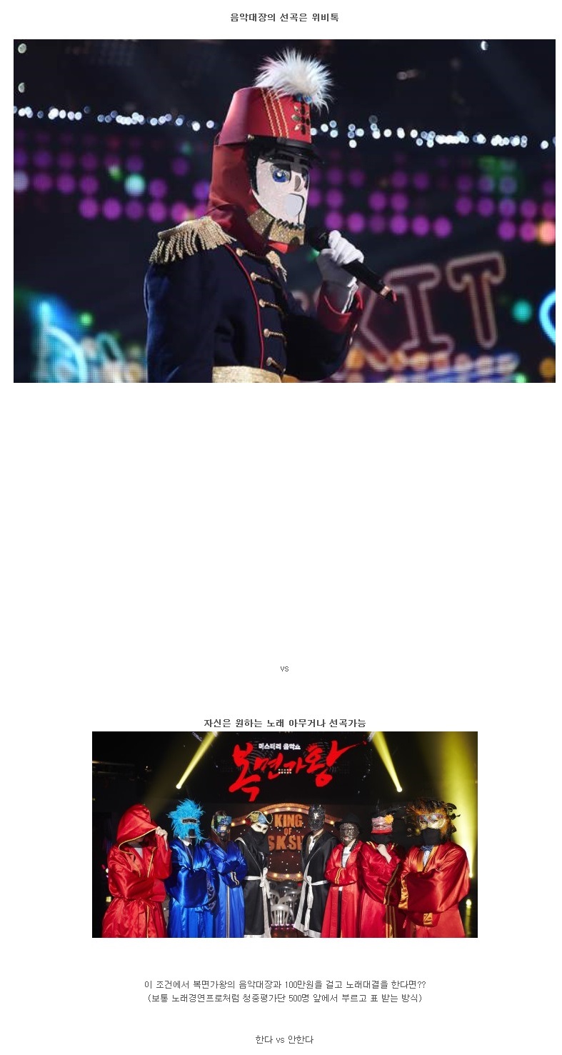 위비톡 부르는 음악대장과 100만원을 걸고 노래대결을 한다면??? 한다 vs 안한다