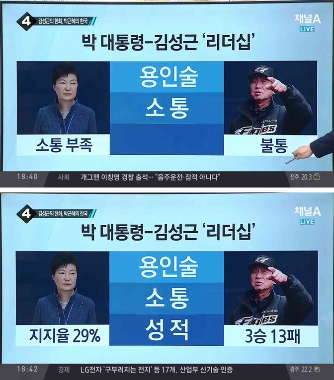 Subject   [블랙] 김성근의 한화, 박근혜의 한국 (종편 캡쳐)