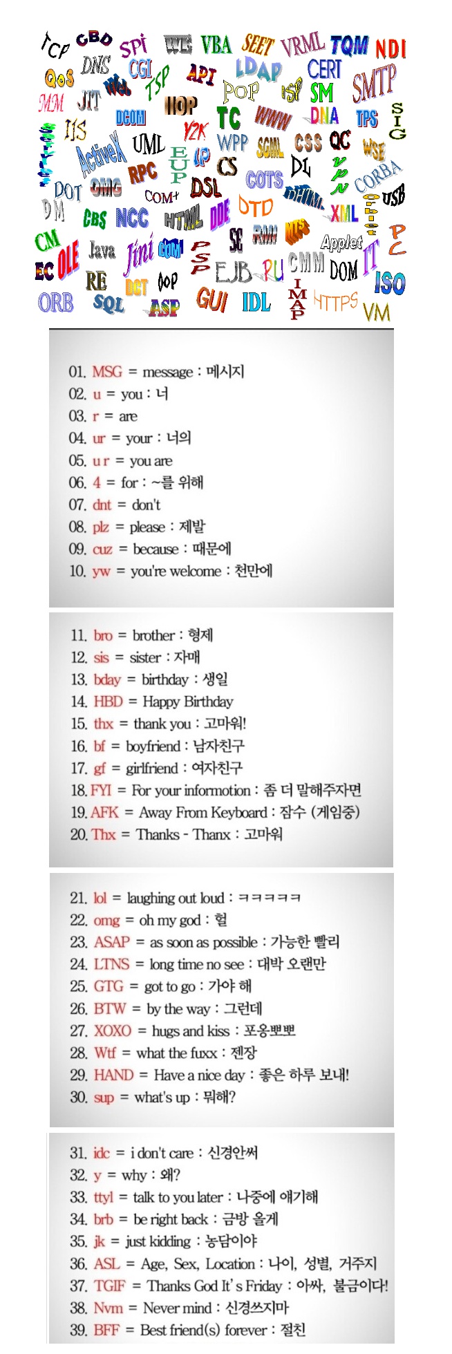 영어권 사람들이 자주 사용하는 줄임말 모음
