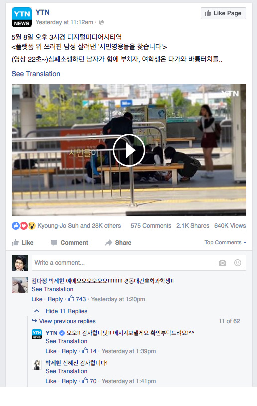 | Subject | 쓰러진 사람을 살려낸 간호학과 학생 |
