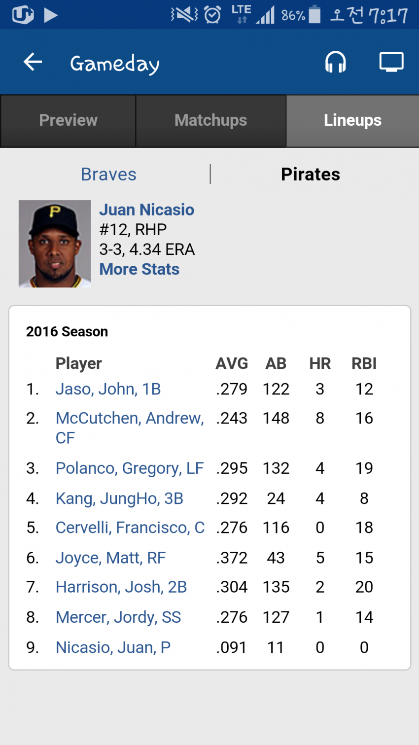 | Subject | 오늘 미네소타, 피츠버그 선발 라이납 |