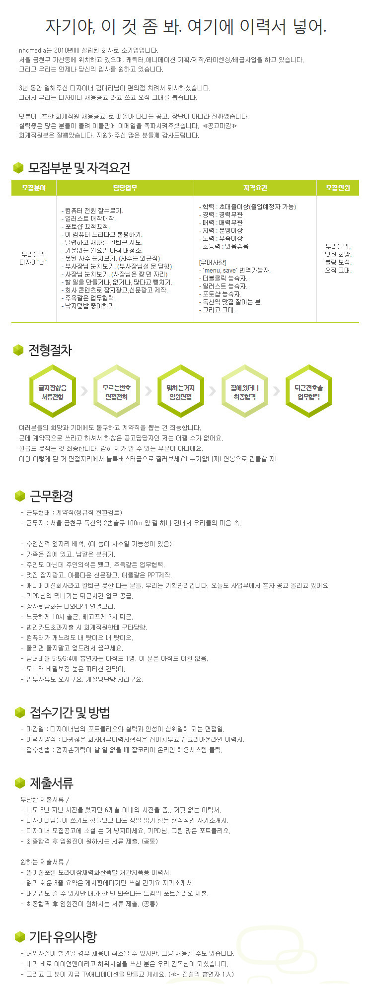 Subject   흔한 디자이너 채용공고