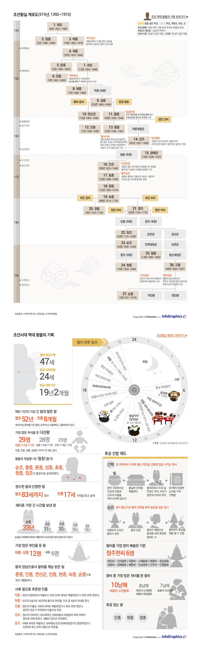 한 눈에 보는 조선왕조 계보도와 기록으로 보는 조선왕조