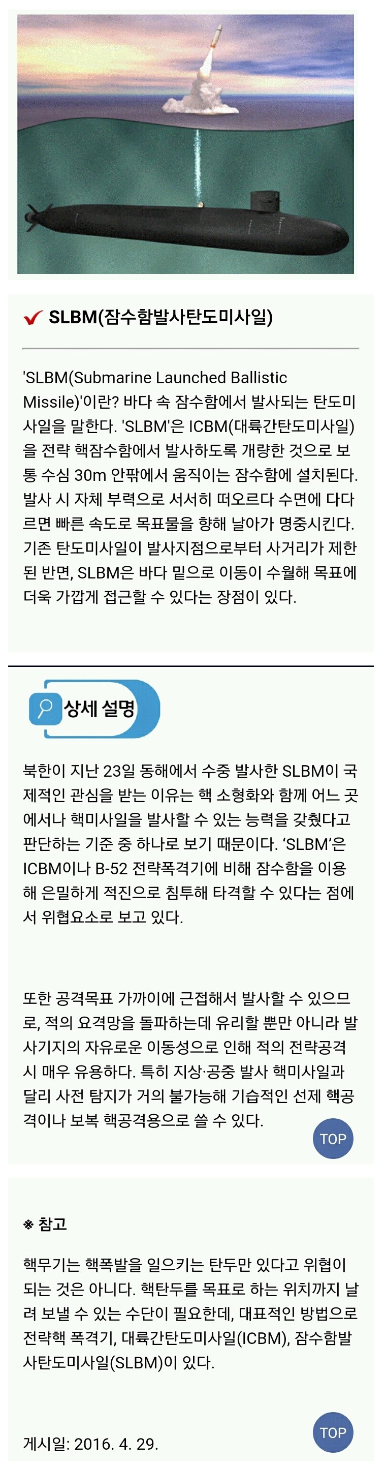 | Subject | 하루 1분 시사상식 6 - SLBM(잠수함발사탄도미사일) |