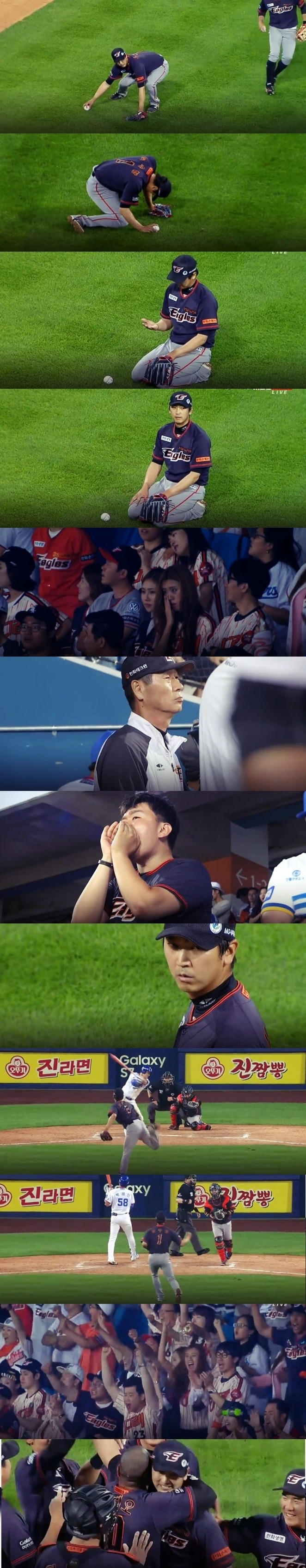 오늘 9회말 번트 타구를 더듬어서 무사 만루만들어버렸지만 극복하고 세이브를 올린 모습 0