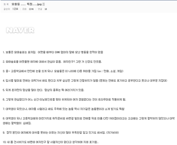 | Subject | 모쏠들 특징 |