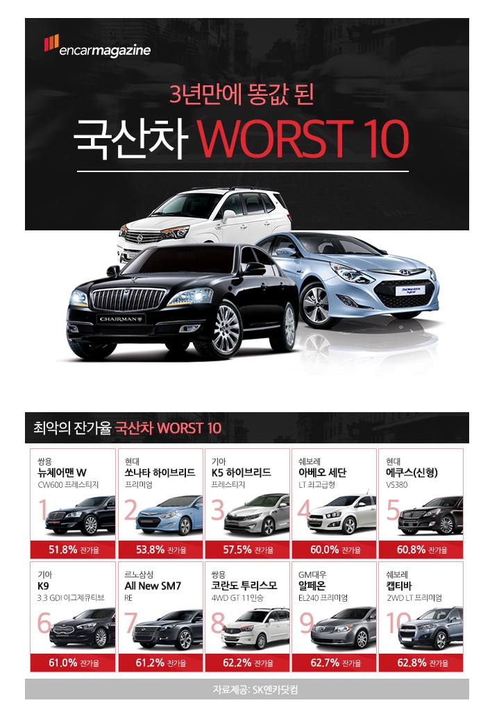 3년만에 똥값 된 국산차 10