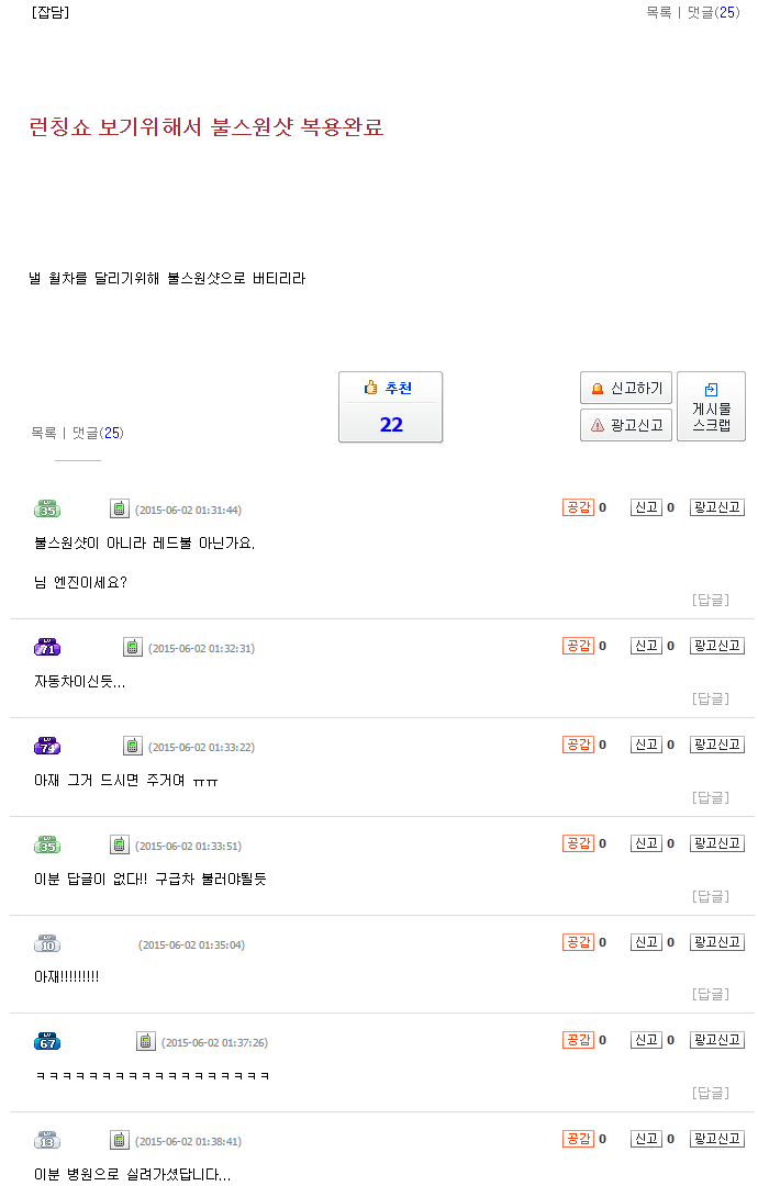 - 유머가 아닌 펌글, 영상 등 가볍게 볼 수 있는 글들도 게시가 가능합니다.