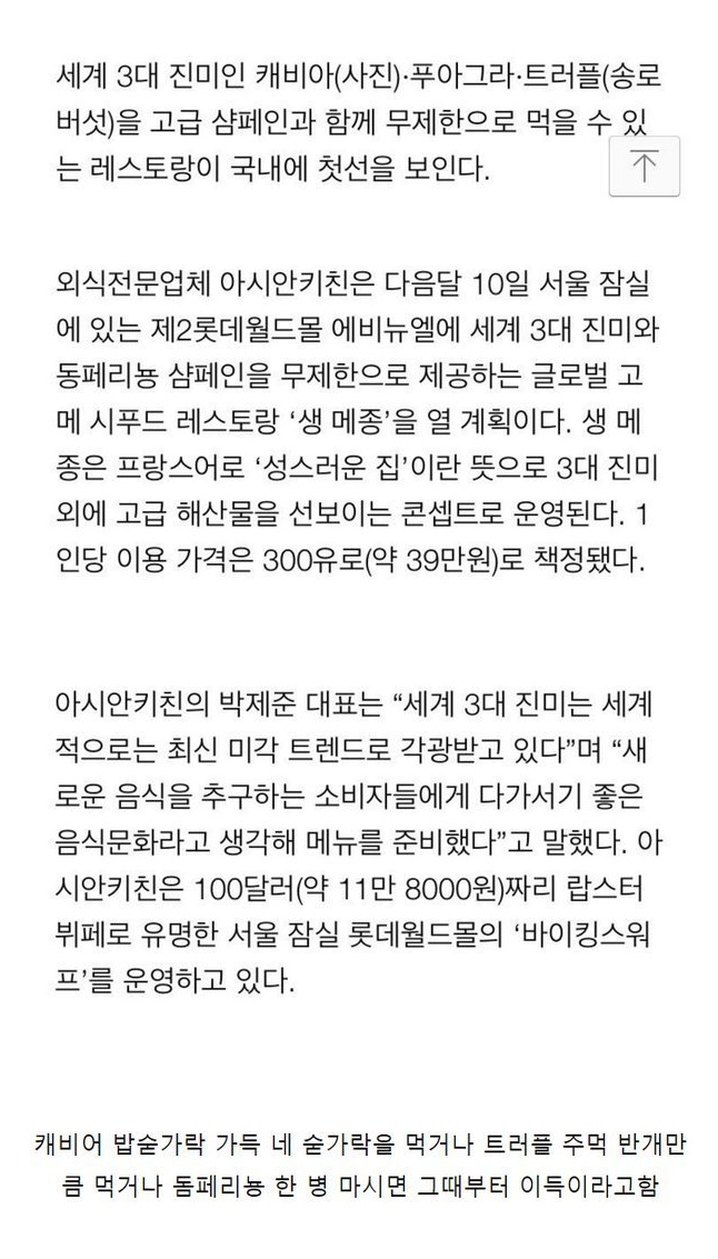 | Subject | 1인당 39 만원짜리 뷔페 국내에 첫선.jpg |