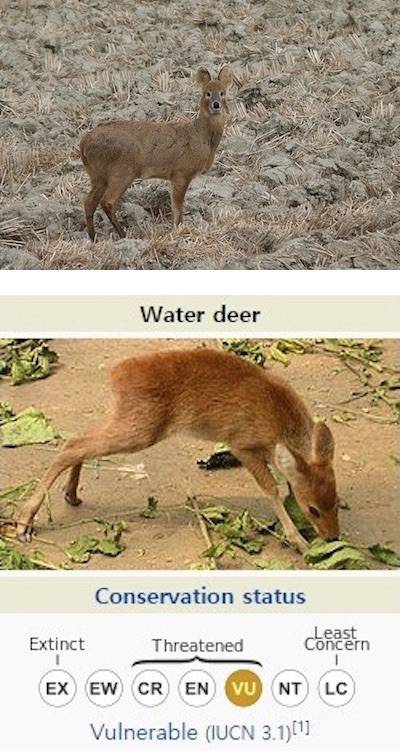 전세계적으로 따지면 멸종위기 급인데, (IUCN(세계자연보전연맹) 적색등급에서 고라니는 멸종위기인 '취약(Vulnerable)' 등급으로 분류) 그 거의 대부분의 개체가 한국에 몰려있는지라 한국에선 유해조수 취급. 0