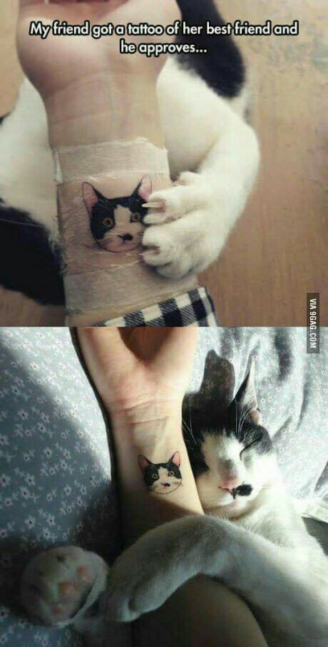 팔에 고양이 얼굴 타투를 해서 감동 받았다고 합니다. 0