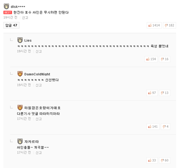 | Subject | 류현진 복귀 기사에 달린 베플 |