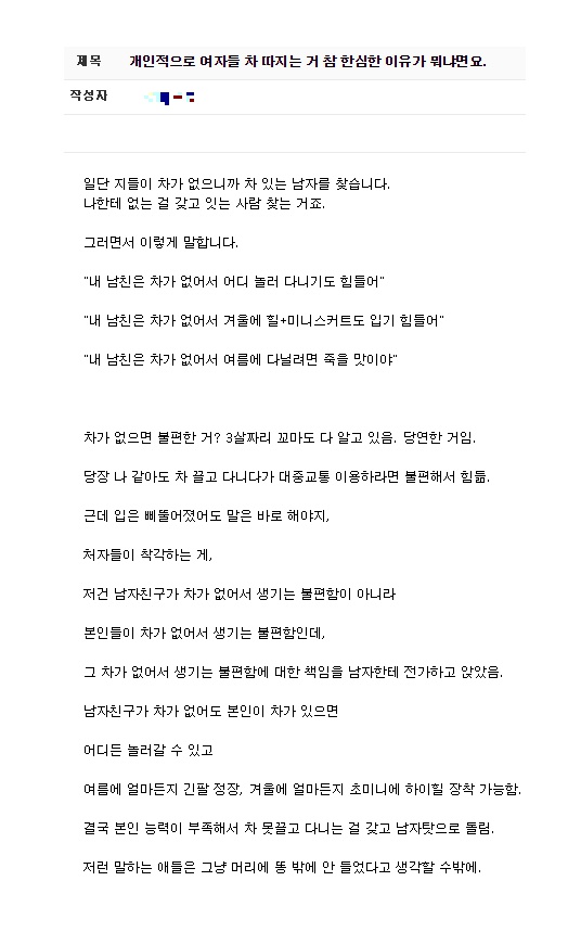 | Subject | 차없는 남자 욕하는 여자들에게 일침.jpg |
