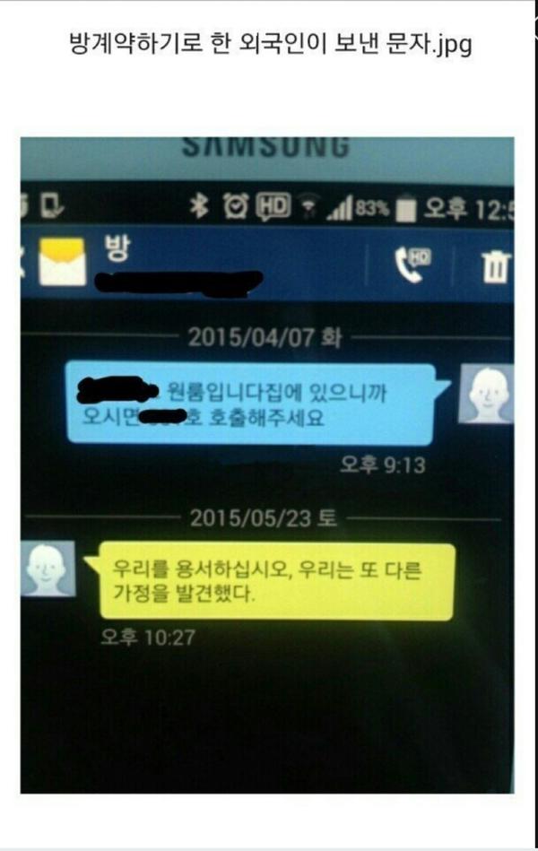 Subject   방 계약하기로 한 외국인이 보낸문자
