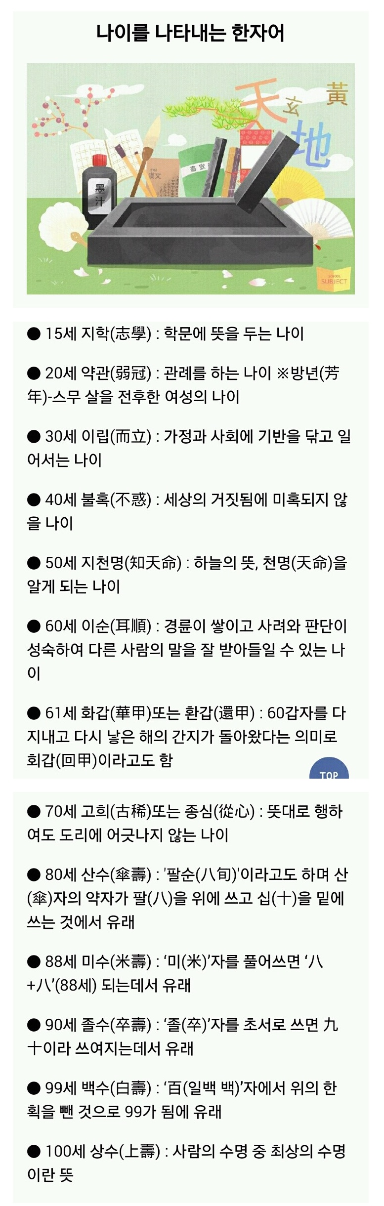 | Subject | 하루 1분 시사상식 50 - 나이를 나타내는 한자어 |