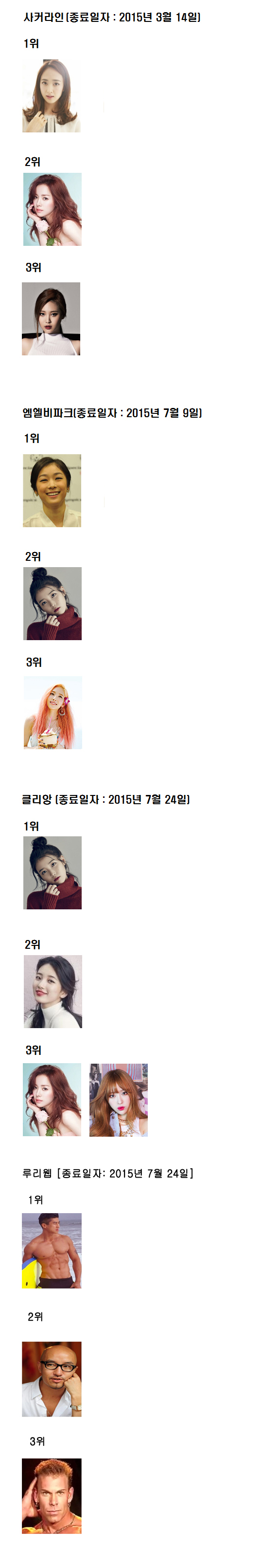 1390 국내 대형 커뮤니티 미인 순위 2 수박이두통에게보린 15/07/27 4935 0
