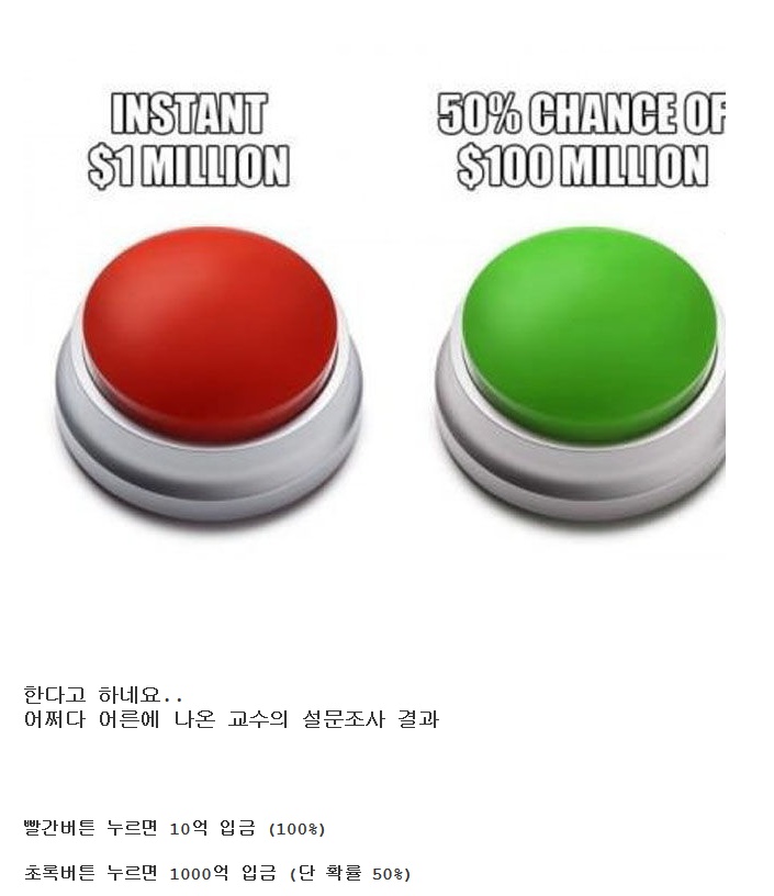 서양인들은 100% 빨간 버튼, 한국인들은 대다수가 초록버튼 선택 0