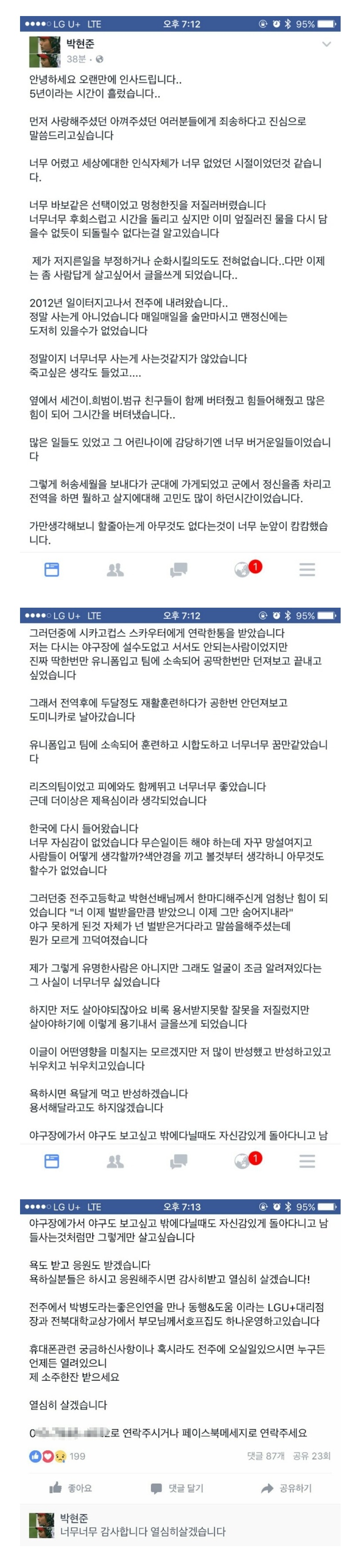 | Subject | 승부조작으로 영구제명 된 투수 박현준 오늘자 페이스북.jpg |