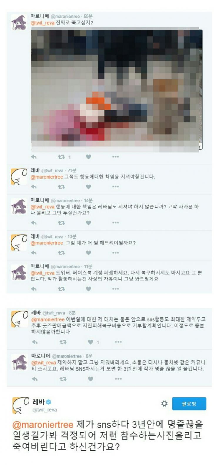 마지막쯤 트윗에 "소통은 디시나 홍차넷 같은 커뮤니티 쓰시고요" 레바 환영합니다! ㅋㅋㅋ 그나저나 레바가 잘못한게 맞긴한데 왜 치킨을 던져주려하는걸까요? 퍼거슨 +1승 0