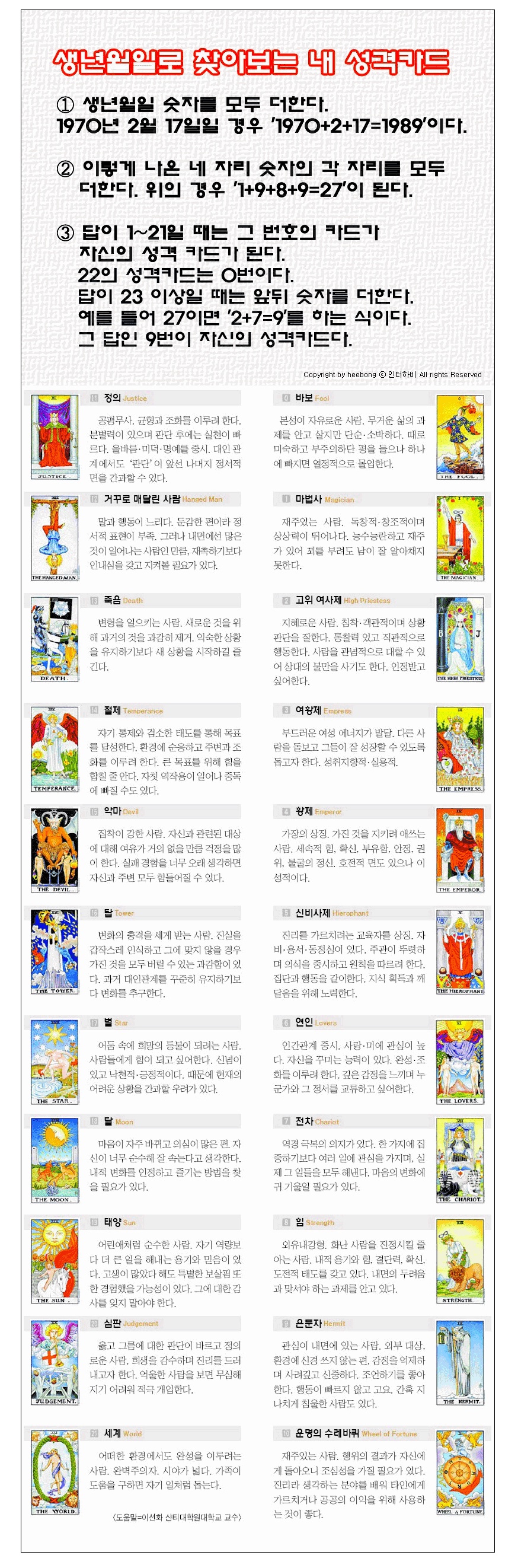생년월일로 알아보는 내 성격카드