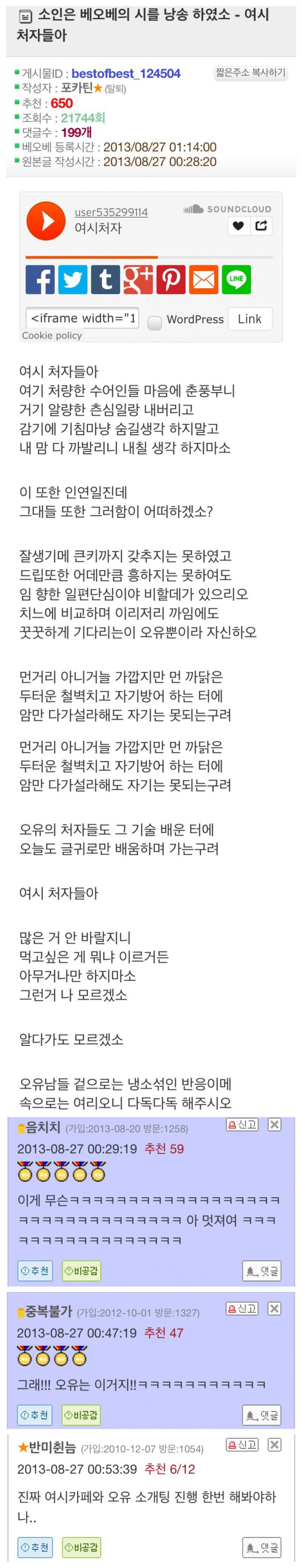 - 유머가 아닌 펌글, 영상 등 가볍게 볼 수 있는 글들도 게시가 가능합니다.