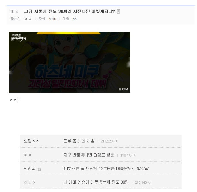 - 유머가 아닌 펌글, 영상 등 가볍게 볼 수 있는 글들도 게시가 가능합니다.