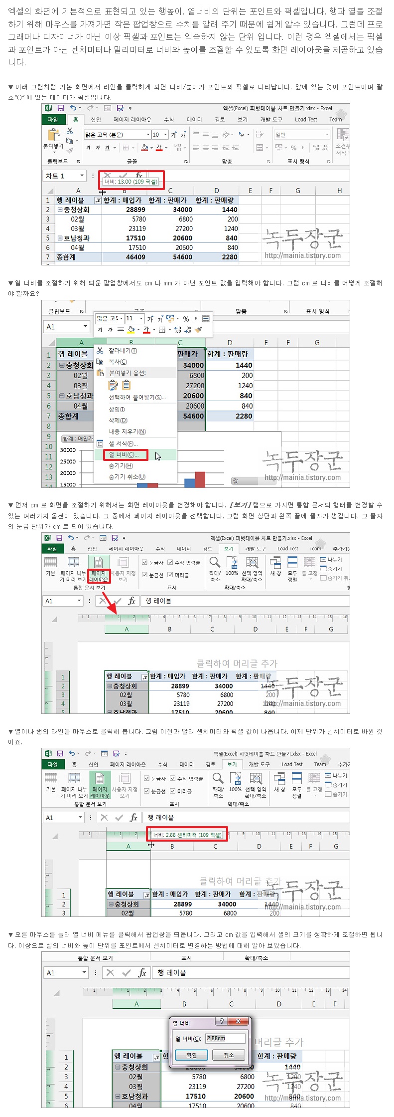Subject   [엑셀 14] 행높이 열너비 cm, 포인트 변환해서 설정하는 방법.jpg