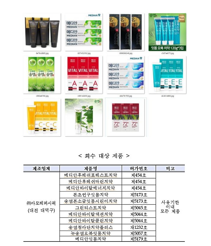 인터넷에 퍼지고 있는 아모레퍼시픽의 메디안 치약 11종 0