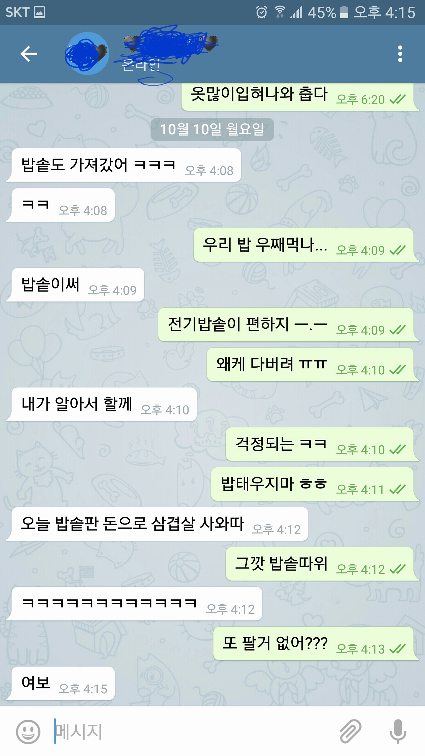 Subject   오늘 아내와 주고받은 문자