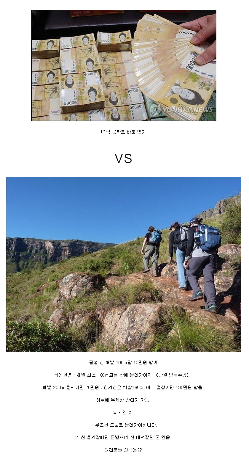 | Subject | 10억 받기 vs 평생 산 100m당 10만원 받기 |